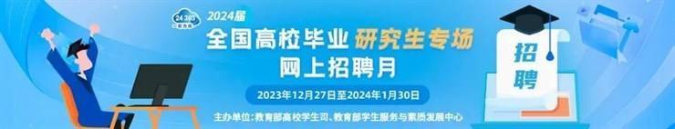 教育部高校员工司、教育部员工服务与素质发展中心决定于2023年12月27日至2024年1月30日举办“2024届全国高校毕业研究生专场网上招聘月”,为首批2024届研究生毕业生提供就业服务!